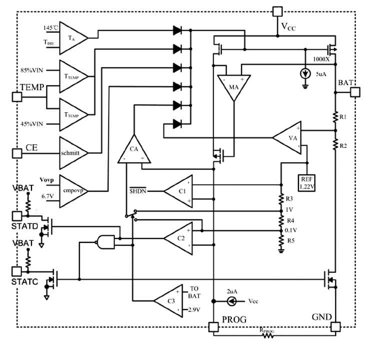 - 恒定电流/恒定电压操作,有温度自适应可实现充