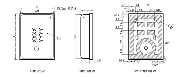 | 声学端口(AP) | ∅0.25 | ±0.05 |